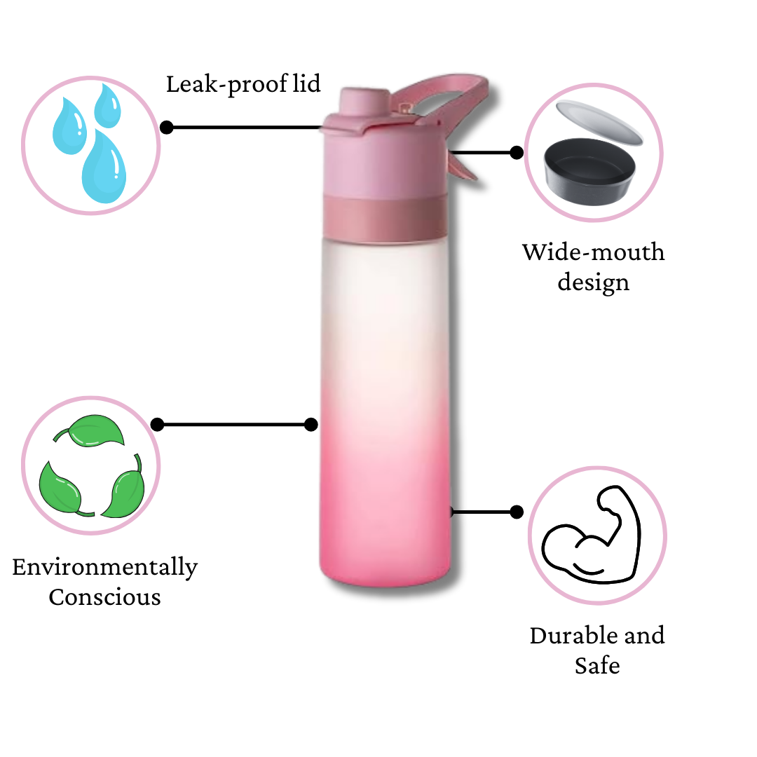 Proper hydration supports optimal bodily function, helping you feel more energized and alert throughout the day. Stay hydrated with our misting water bottle and experience increased vitality to tackle every task with ease.