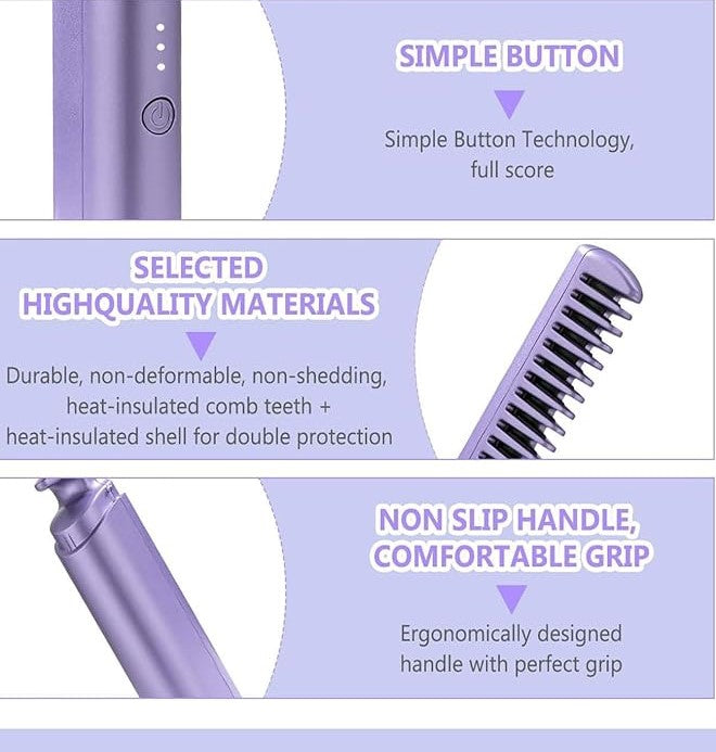 - Admire your polished and transformed hairstyle, achieved effortlessly with the Cordless Hair Straightener and 3D Hair Care Comb. Feel confident and ready to conquer your day!